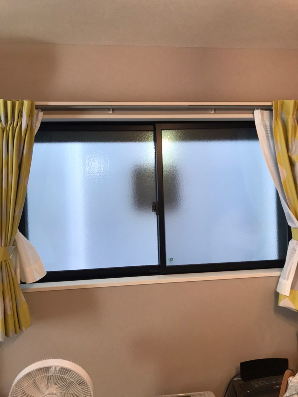 施工後の内窓(インナーサッシ)設置写真です。既存の窓の手前にもう一枚、樹脂製の窓を取り付けました。
